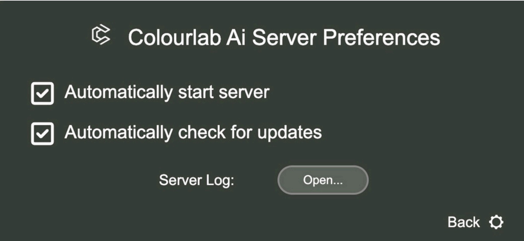 Once you click on the configuration option, you’ll be presented with the ColourLab AI Server Control window. Here’s an overview of the features available:
