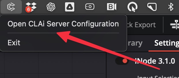 • Click on this icon and select the option OpenCLAI Server Configuration.