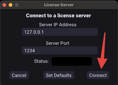 • Local IP (Same Computer): If you have installed the server on the same computer you are working on, the plugin will automatically use the local IP address (the default address of your own computer). In this case, you do not need to change anything. Simply press Connect.