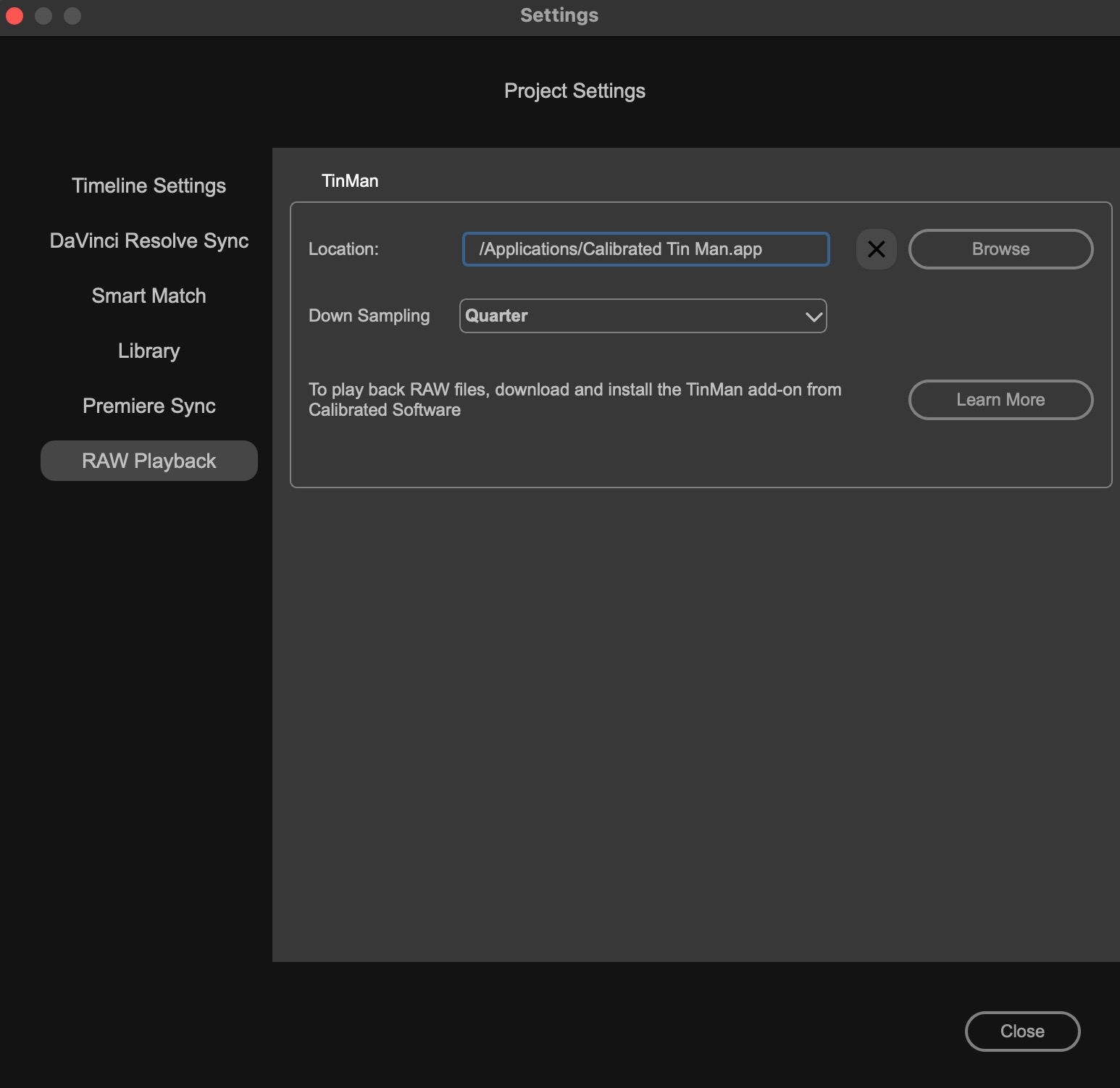 To enable the playback of RAW camera files, ColourLab AI has partnered with TinMan from Calibrated Software, starting with version 3.3. TinMan is an add-on software that must be purchased separately from the TinMan website. It offers state-of-the-art RAW image processing and playback capabilities. Tinman costs only$50 per year.