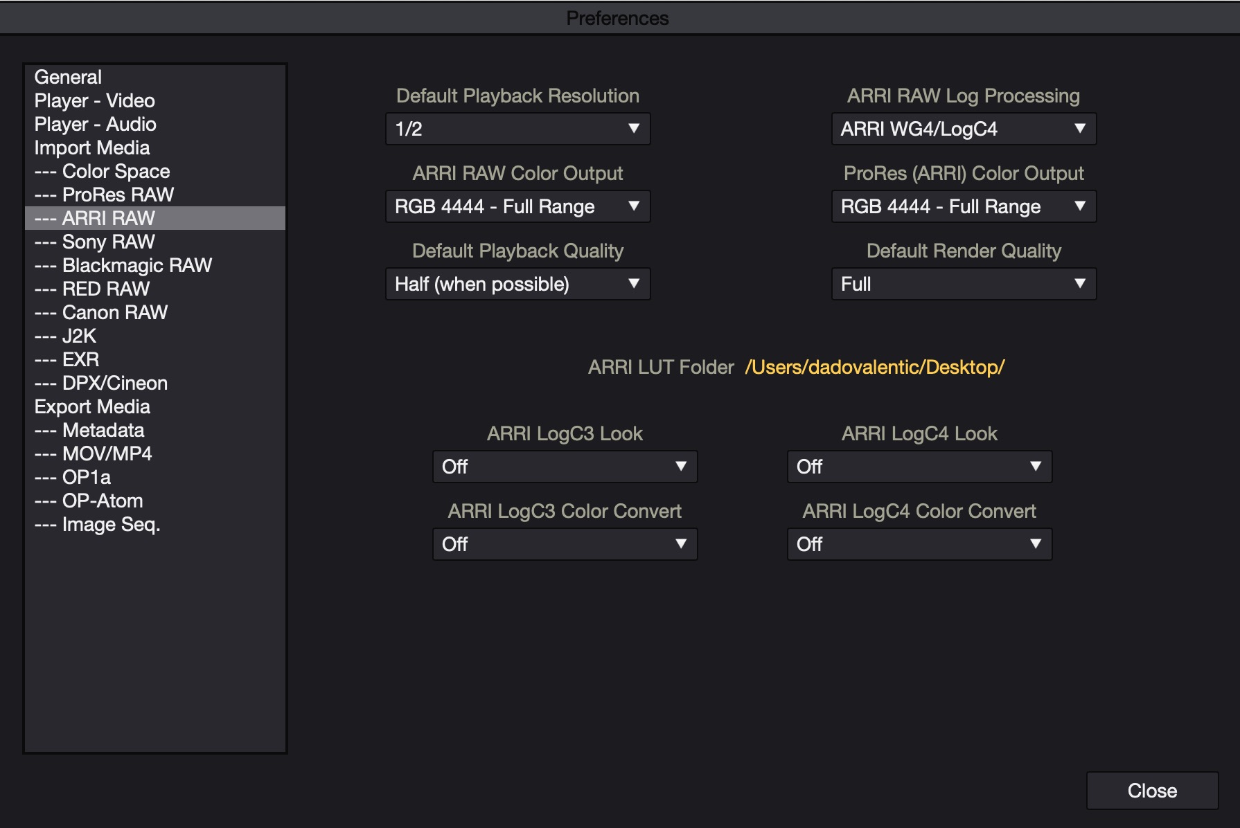 3. Under ARRI RAW Settings, make the following adjustments: