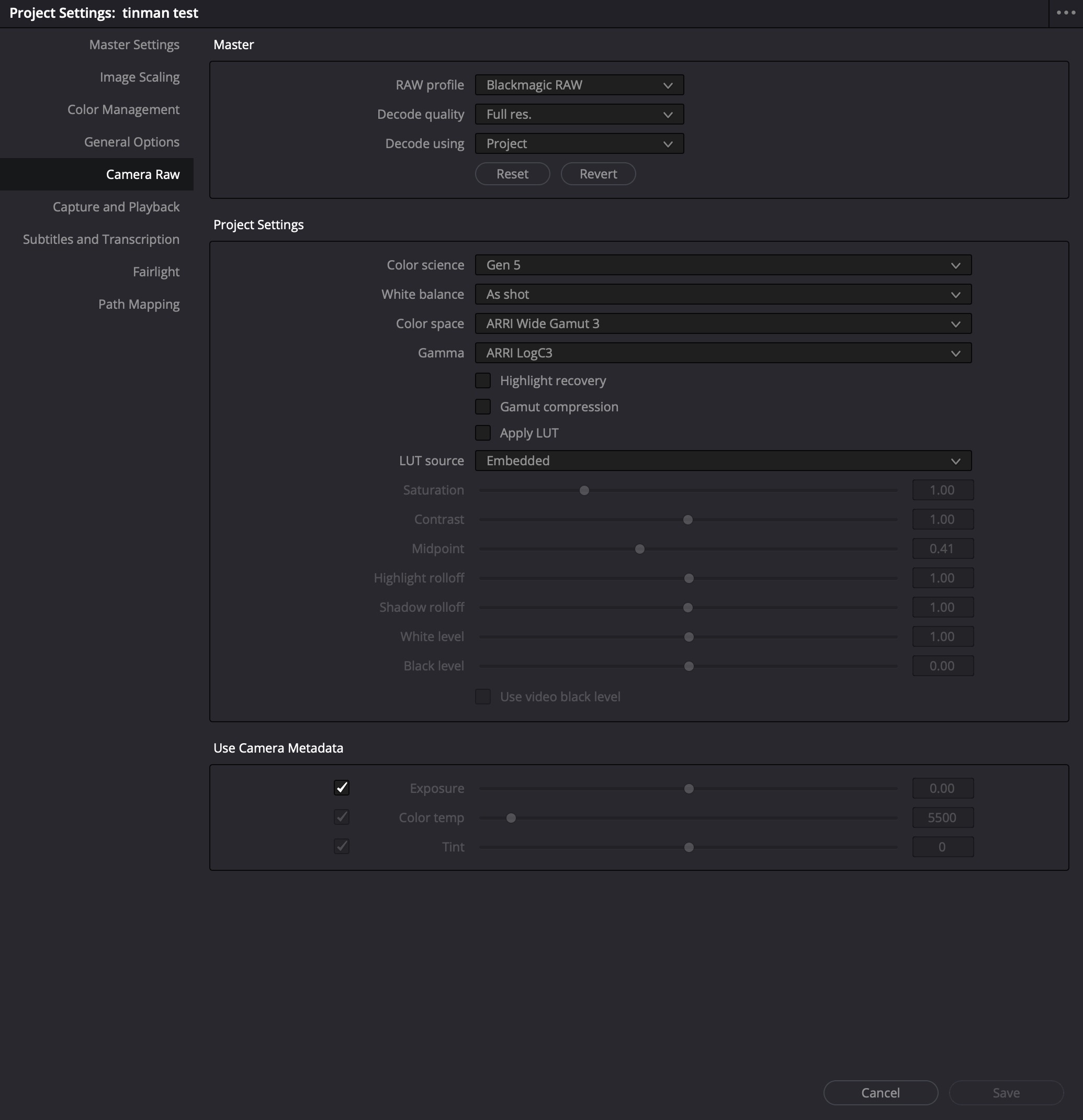 3. Under Blackmagic RAW Settings, make the following adjustments: